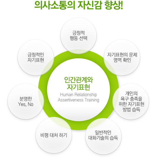 자기표현 훈련은 언어적, 비언어적인 표현에 대한 숙련된 기술을 배우는 것이다. 의사소통기술을 잘 하는 능력도 연마될 수 있는 것이며 시간과 노력을 투자하는 사람이면 누구나 배울 수 있는 행동이다. 이 프로그램은 비자기표현적인 행위들을 수정하고 또 자기표현적인 행동을 익힐 수 있도록 도와준다.